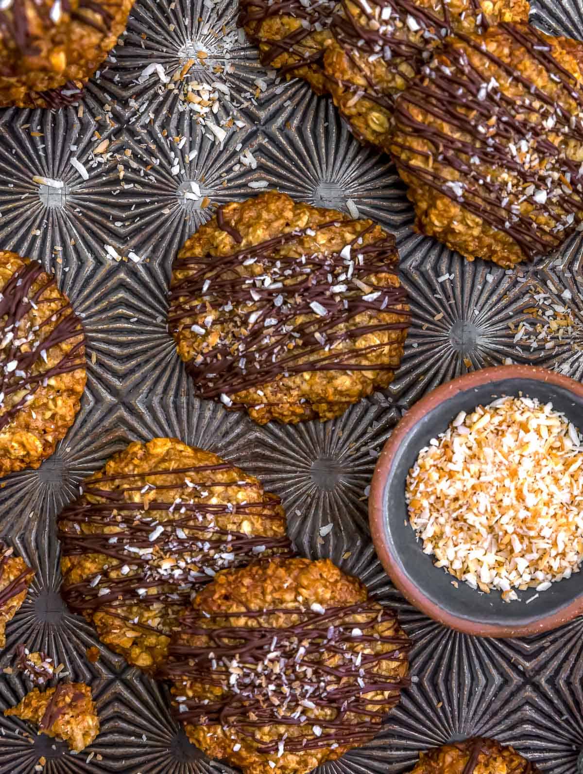 If you love a cookie that’s thin, full of crunch, and utterly addictive, these thin and crispy lace-style cookies are your new obsession. Perfectly crunchy and impossibly light, they releasing a warm, toasty oat flavor that mingles with a hint of coconut with a rich chocolate drizzle.